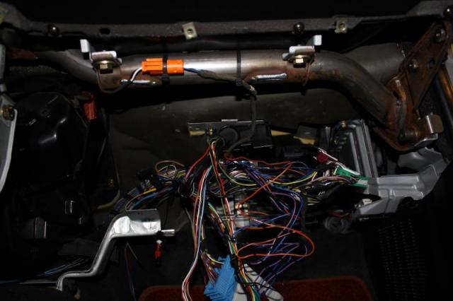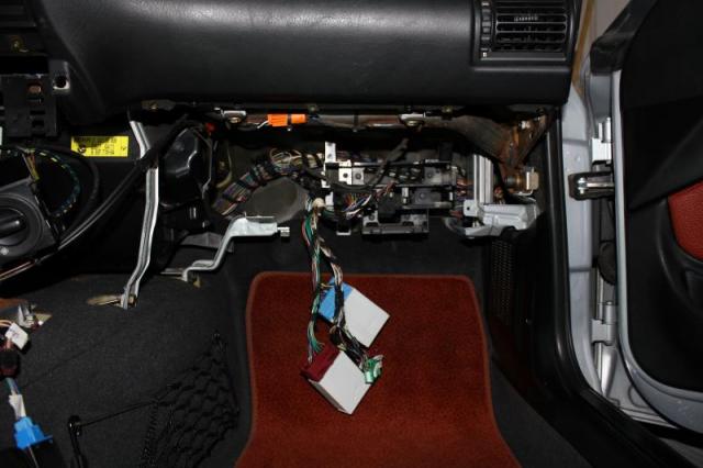 The aftermarket alarm system is taking up most of the space behind the glove compartment. This alarm has to come out.