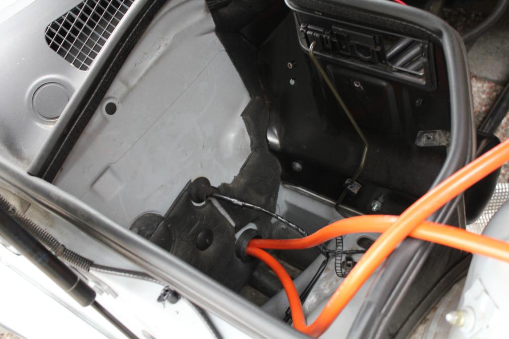 Engine compartment: Here I also added a new grommet. The grommet it way too large for the two wires, ill fill up the grommet with some sort of 1-component rubber/caulk.